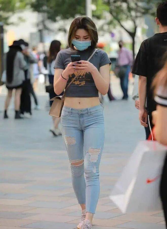 既然已经起到了修身显瘦的作用,就算完成了基本的认为,而破洞裤带来的时髦与潮流,则是对于女孩的额外奖励。年轻女孩之所以喜欢穿破洞裤,一方面是对于牛仔裤的爱,而另一方面,确实破洞裤很个性,因为其膝盖处不规则的破洞设计,就起到了画龙点睛的作用,盘活了美女的整体穿搭,谁会不喜欢呢?