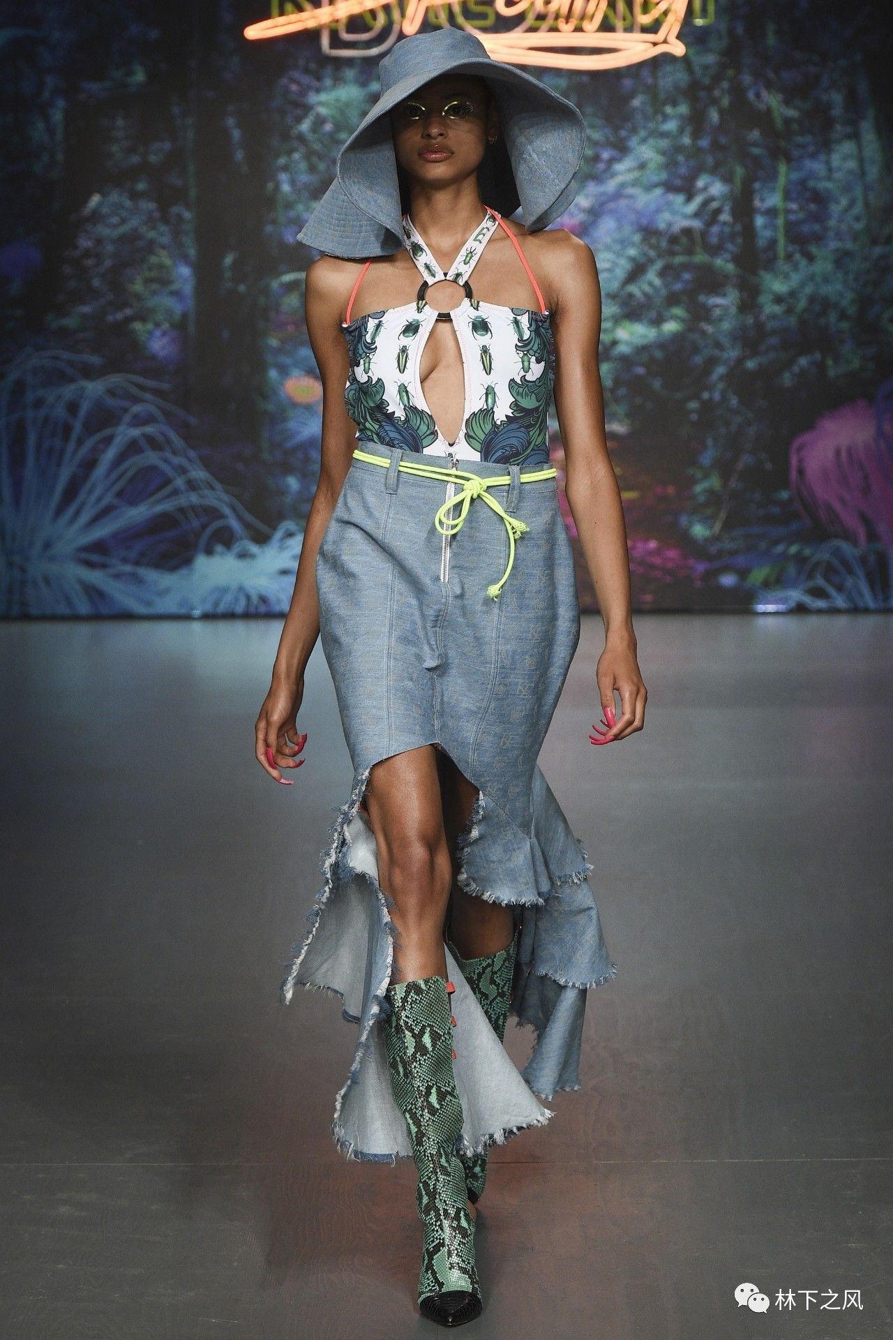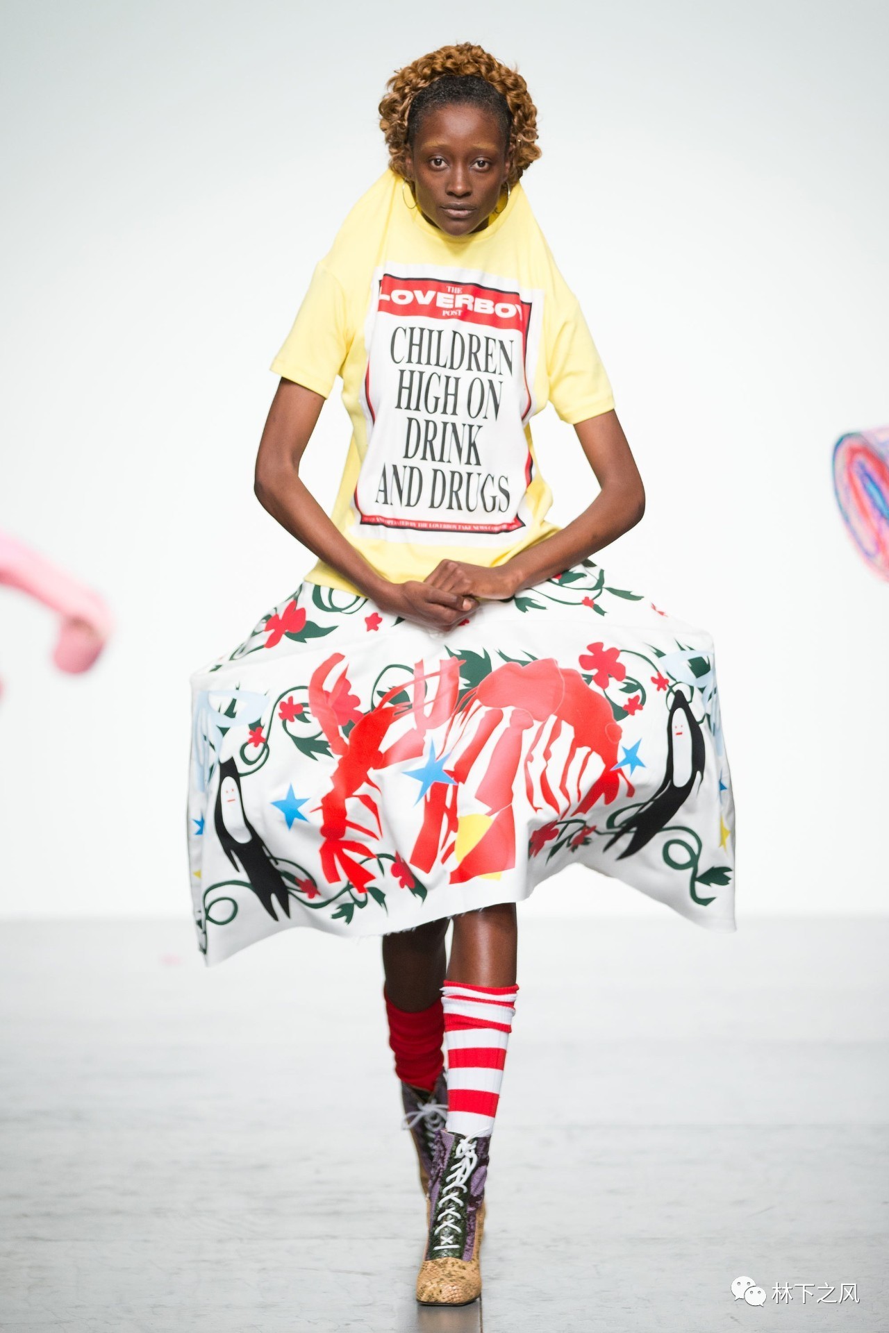 当然,合并秀的风格并不止行为艺术这一种,还有别种办法展示。比方说,本次男装节主推奇幻丛林风的Katie Eary(凯蒂·依厄)就是一例。作为设计男装的年轻女设计师,能在短短几年内崛起,被评为有创意有特色的设计师,实属不易。