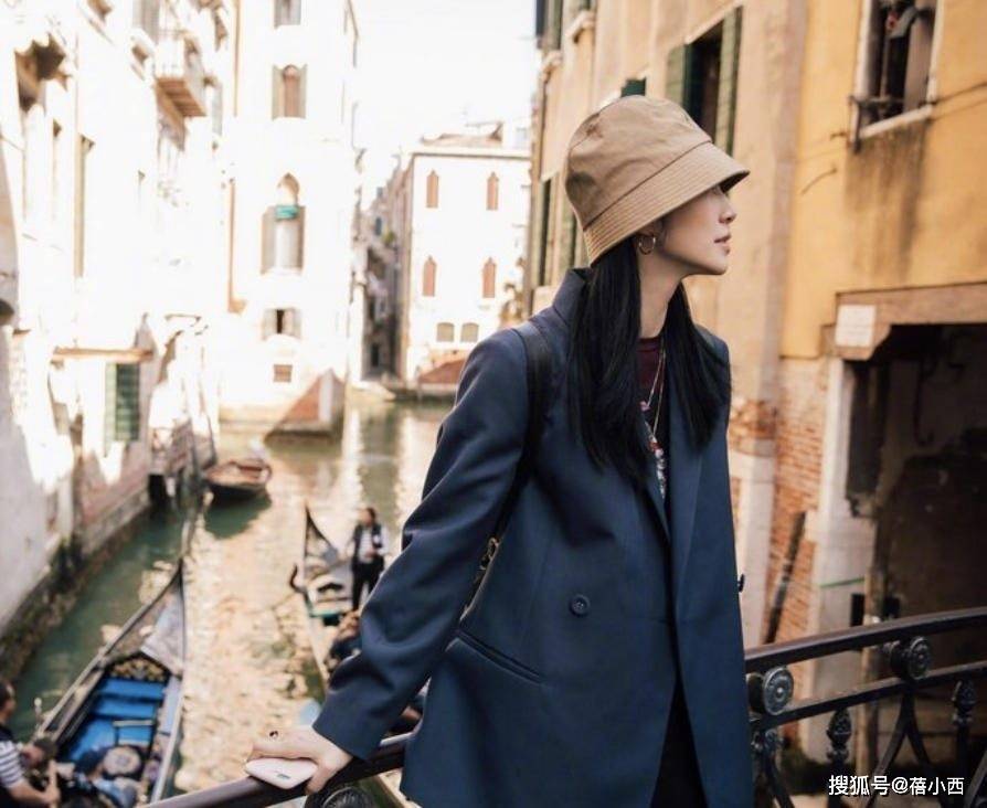 姚晨去旅游穿搭真减龄穿西装渔夫帽像大学生40、50女人学学