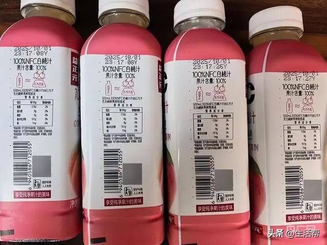 王先生告诉记者,10月1日当天,他与亲友在外聚餐,考虑到有孩子在场,他特意在北京市朝阳区某烟酒店购买了一瓶白桃汁饮料。聚餐结束后,王先生才注意到,这瓶在当天13时许购买的饮料,生产日期竟标注为10月1日23时17分。