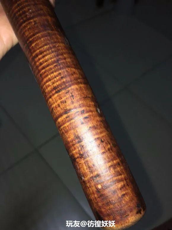 鸡翅木做的擀面杖,很漂亮吧?这纹路,连老盘都觉得做擀面杖太可惜了,不如盘起来,做个把件好了!