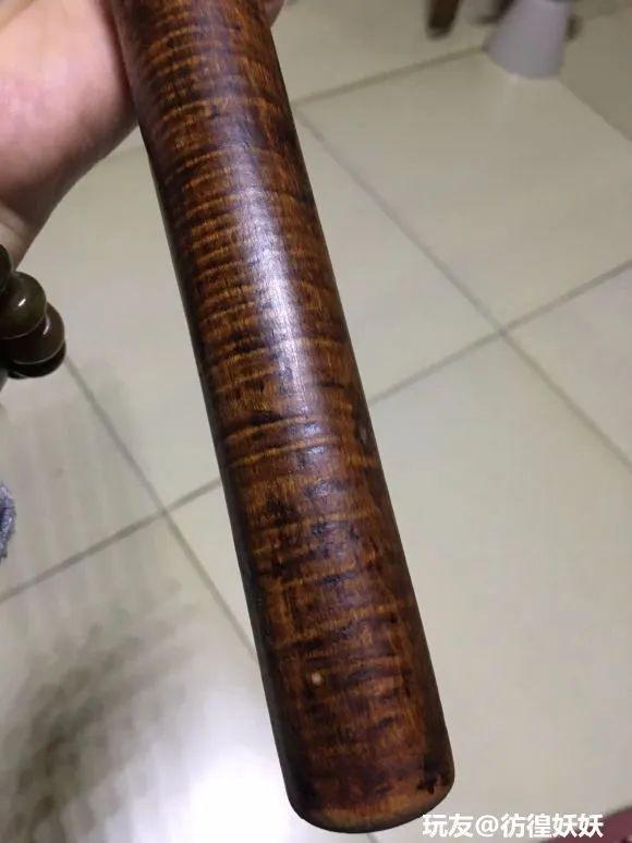 玩友@尼古拉斯凯男 家里这擀面杖放了几十年了,搬家给找出来了。砂纸打的时候掉红屑,上棉布也是红,他怀疑是小叶紫檀。