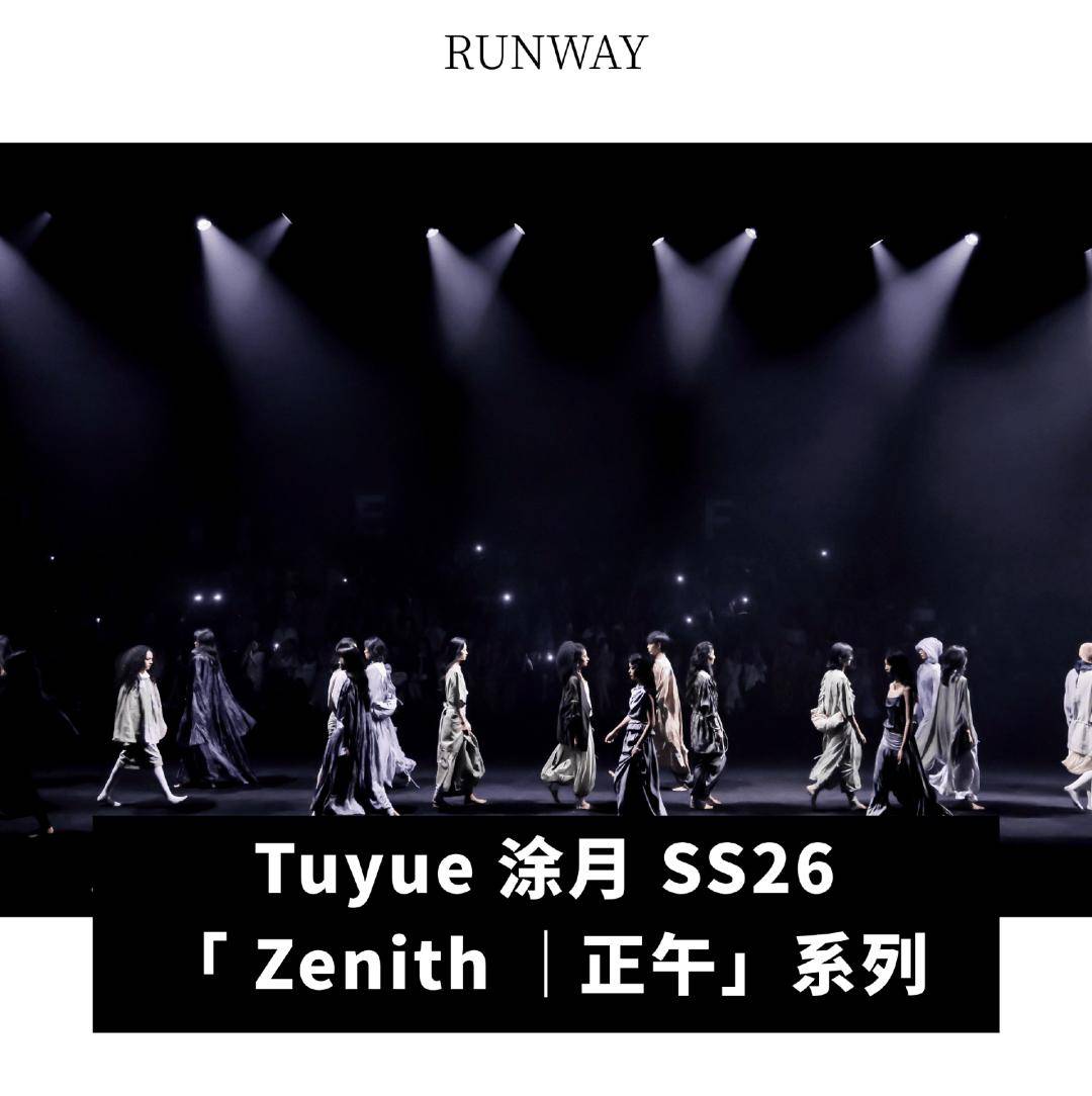 那些身影在光影中移动,他们既非模特也非衣架,而是更接近于某种本质的形式存在。 Tuyue 将这个系列命名为《 Zenith |正午》。