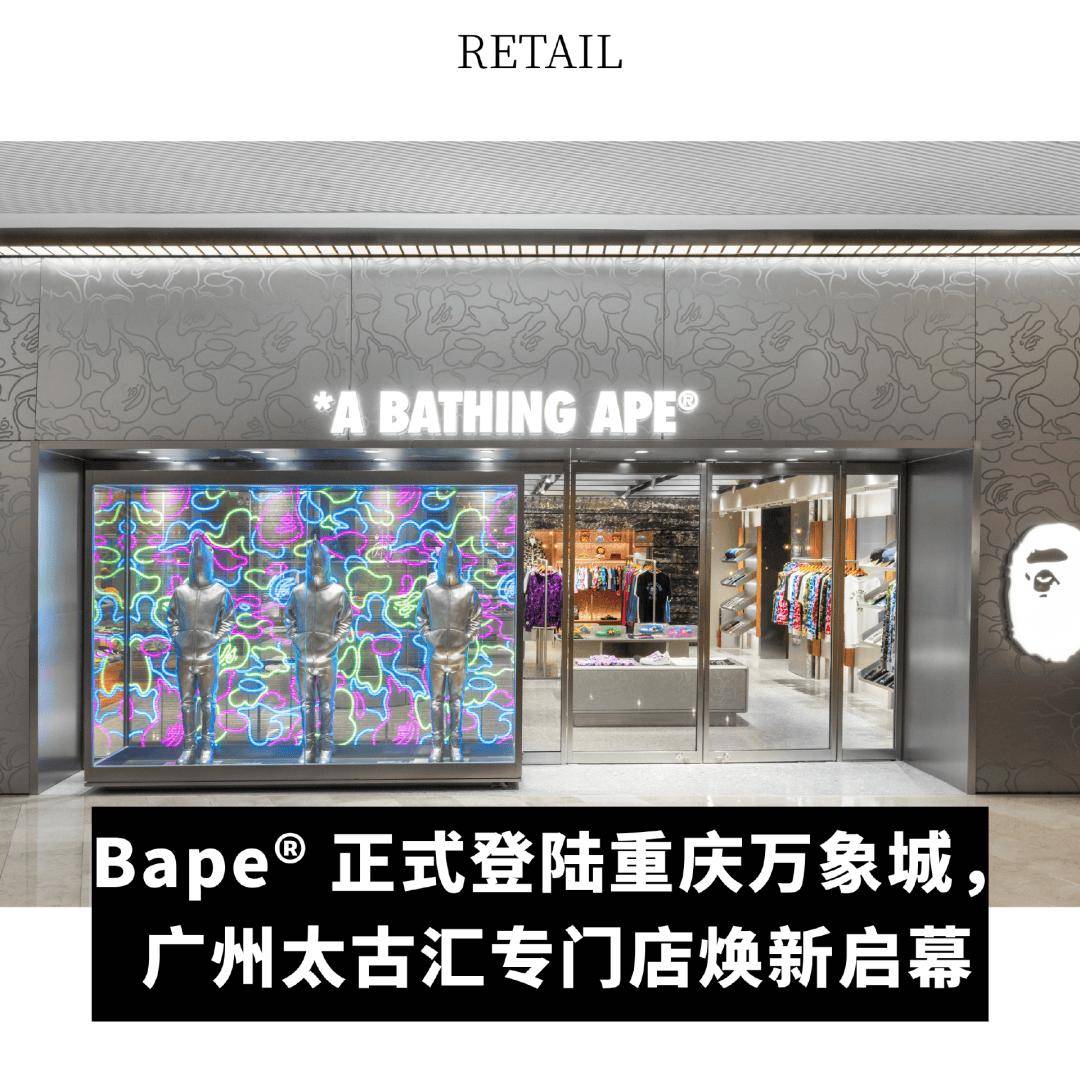 国际街头时装品牌 A Bathing Ape® 于重庆开设首间专门店,高调入驻地处繁华地段的尖端时尚地标万象城。作为中国说唱音乐最活跃的发源地之一,重庆因快意洒脱的地域文化孕育了独树一帜的说唱江湖,这里聚集了一群因热爱街头文化而与 Bape® 结缘的品牌忠粉。同日,位于广州太古汇的 Bape Store® 移位启幕,为广州猿人呈现焕然一新的升级空间。