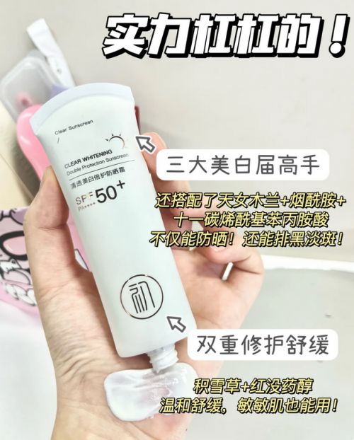 里面添加了多种天然养肤成分,温和不刺激,边防晒还能边养肤提亮,敏敏肌用着超安心。